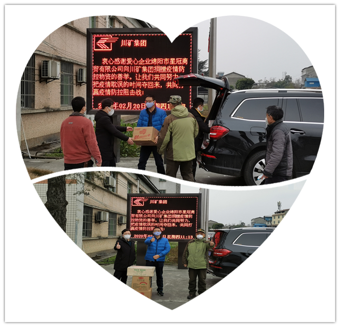 2月20日,作為企業合作伙伴,綿陽市星冠商貿有限公司主動采購了一批醫用口罩、消毒酒精和消毒液送往川礦,為企業做好疫情防控工作助力。在接受愛心捐贈時公司領導對此善舉表示感謝,希望大家一起努力,共同打贏疫情防控阻擊戰,把疫情耽誤的時間奪回來,確保完成年度目標任務。