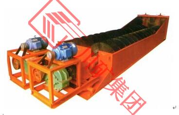 螺旋洗砂機是借助于大小、比重不同的固體粒在液體中的沉降速度不同的原理,細礦粒浮游在水中或溢流出,粗礦粒沉于槽底。由螺旋推向上部排出,來進行機械分級的一種分級設備,能把磨機內磨出的料經過過濾,然后把粗料利用螺旋片旋片旋入磨機進料口,把過濾出的細料從溢流管子排出。該機底座采用槽鋼,機體采用鋼板焊接而成。